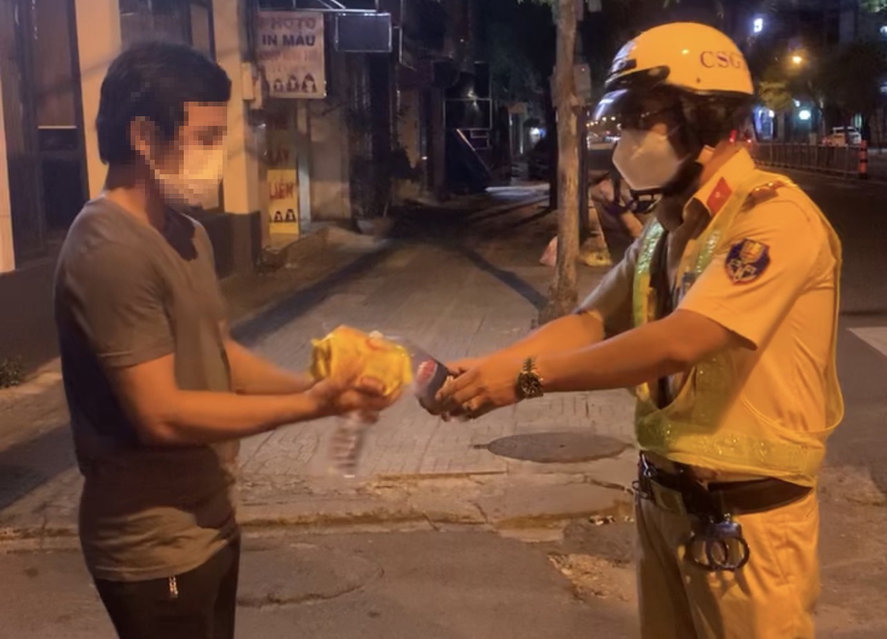 Anh cho biết: “Giấy tờ của em bị mất hết trong đêm ngủ ở vỉa gè Ngã tư Bảy Hiền. Từ trưa có người cho em cơm từ thiện ăn tạm, còn tới giờ thì đói”. CSGT trực tại chốt kiểm soát đã gửi anh T. phần ăn lót dạ buổi chiều của mình để anh qua cơn đói. Sau đó, anh T. được đưa về UBND phường 13 để xác minh thêm thông tin, tìm phương án tiếp tục hỗ trợ.Trưởng công an Q.Tân Bình cho biết: “Phường sẽ có biện pháp kiểm tra xác minh thông tin và hỗ trợ thêm cho anh T. nếu xác định anh đúng là người khó khăn bị ảnh hưởng bởi dịch bệnh, không vi phạm pháp luật”. Đồng thời, thượng tá Lợi nhắc nhở anh T. phải chấp hành các quy định về phòng chống dịch và thực hiện các biện pháp vệ sinh cá nhân bảo vệ cộng đồng.