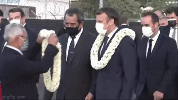 Theo như vào ngày 25/7 vừa qua, Tổng thống Emmanuel Macron có chuyến thăm tới đảo Tahiti nằm trong lãnh thổ Polynesia thuộc Pháp khiến ông Emmanuel Macron trở thành tâm điểm chú ý trên mạng xã hội khi hình ảnh ông đeo đầy các vòng hoa với biểu cảm cực kì hài hước.