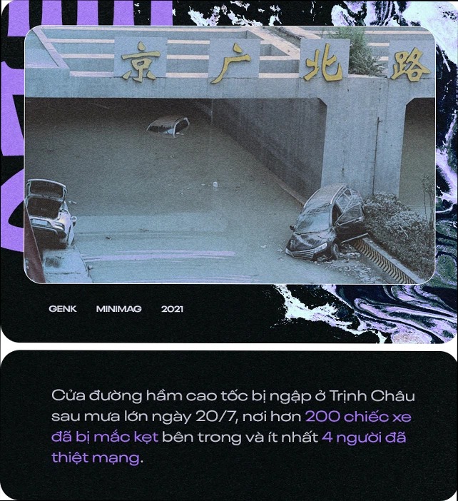 Tất cả những cảnh tượng này không xảy ra trong một bộ phim, mà đều là những video có thật trên mạng xã hội Weibo của Trung Quốc những ngày qua. Một trận lũ lịch sử đã quét qua thành phố Trịnh Châu, thuộc tỉnh Hà Nam và giết chết ít nhất 56 người, trong đó có 13 người mắc kẹt trong đường tàu điện ngầm và 4 người mắc kẹt bên trong một hầm đường bộ cao tốc khác.