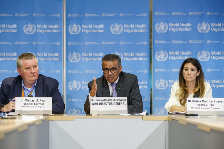 (Từ trái sang phải) Giám đốc về tình trạng khẩn cấp của WHO Michael Ryan, Tổng giám đốc WHO Tedros Adhanom Ghebreyesus, và trưởng nhóm kỹ thuật về Covid-19 của WHO Maria van Kerkhove. Ảnh: AP.