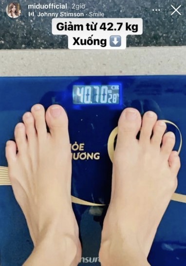 Tuy nhiên, mới đây, trên trang cá nhân, Midu khiến dân mạng không khỏi ngỡ ngàng khi bất ngờ tiết lộ cân nặng hiện tại của bản thân chỉ vẻn vẹn 40,7kg. Theo chia sẻ của người đẹp sinh năm 1989, cô đã sụt 2kg trong thời gian giãn cách xã hội. Với chiều cao 1m60, mức cân nặng chỉ 40kg khiến Midu vốn đã nhỏ bé lộ rõ thân hình gầy guộc, khẳng khiu. Điều này thể hiện rõ qua hình ảnh bàn chân được nữ diễn viên 8X chia sẻ. Những ngón chân xương xẩu, với nhiều đường gân chằng chịt từ phần cổ chân xuống vô cùng lo lắng cho sức khoẻ của cô.