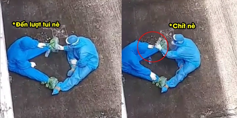 Nhân viên y tế 'tung hứng' giải khuây. Tranh thủ lúc giải lao, hai nhân viên y tế chơi trò tung chai nước để xả stress. Dịch bệnh mau kết thúc để mọi người được trở về cuộc sống bình thường.