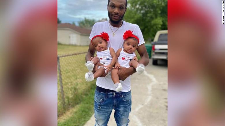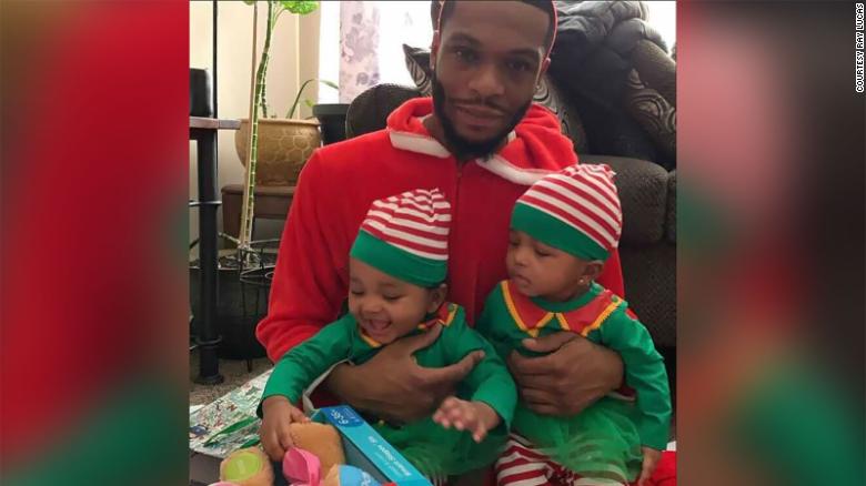Ray Lucas và hai con gái sinh đôi 18 tháng tuổi. Ảnh: CNN
