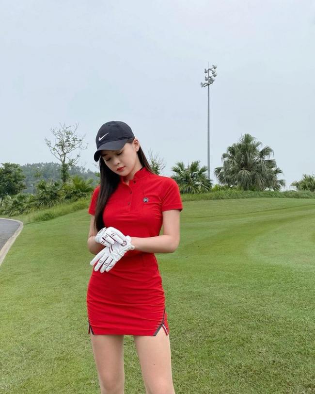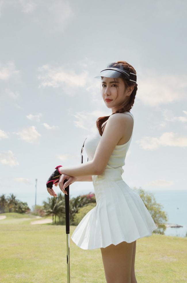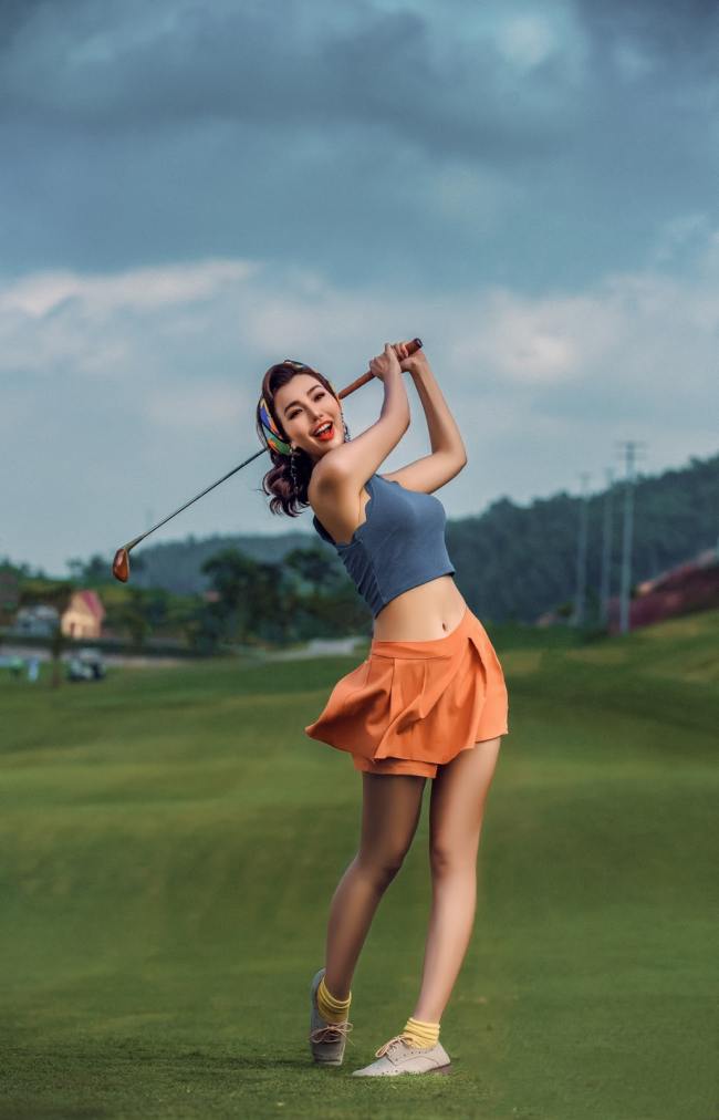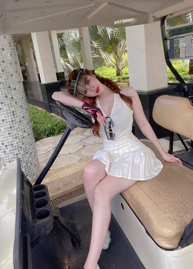 Trâm Anh chọn quần short, chân váy siêu ngắn mỗi lần chơi golf.