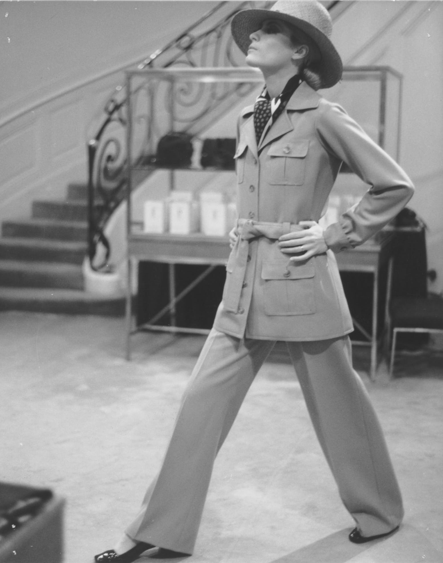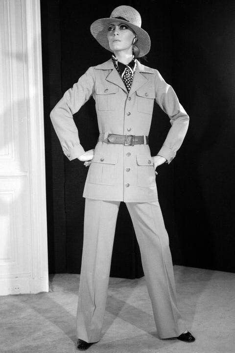 Lấy cảm hứng từ nguồn gốc Algeria của mình và sử dụng phương pháp ready to wear khác biệt, Saint Laurent đã đưa áo khoác safari vào lĩnh vực thời trang cao cấp. Phong cách thực dụng đặc trưng với khái niệm quân đội quá khổ và túi vá lớn. Nhà thiết kế thường trình diễn chiếc áo khoác này trong các bộ sưu tập thời trang cao cấp, một sự khác biệt hoàn toàn so với những chiếc váy và sáng tạo phức tạp được thể hiện trong thời kỳ này. Là một trong những phong cách đặc trưng của YSL, chiếc áo khoác vẫn được giám đốc sáng tạo hiện tại của thương hiệu tái hiện lại với một số kiểu dáng và đường cắt sáng tạo.
