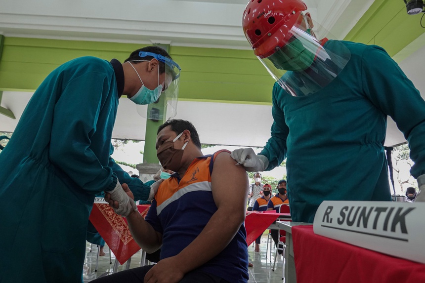 Một người được tiêm vaccine tại đảo Java, Indonesia. Ảnh: Reuters.