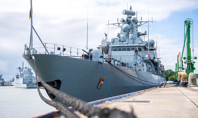 Hộ vệ hạm Bayern của hải quân Đức tại cảng Wilhelmshaven. Ảnh: AFP.