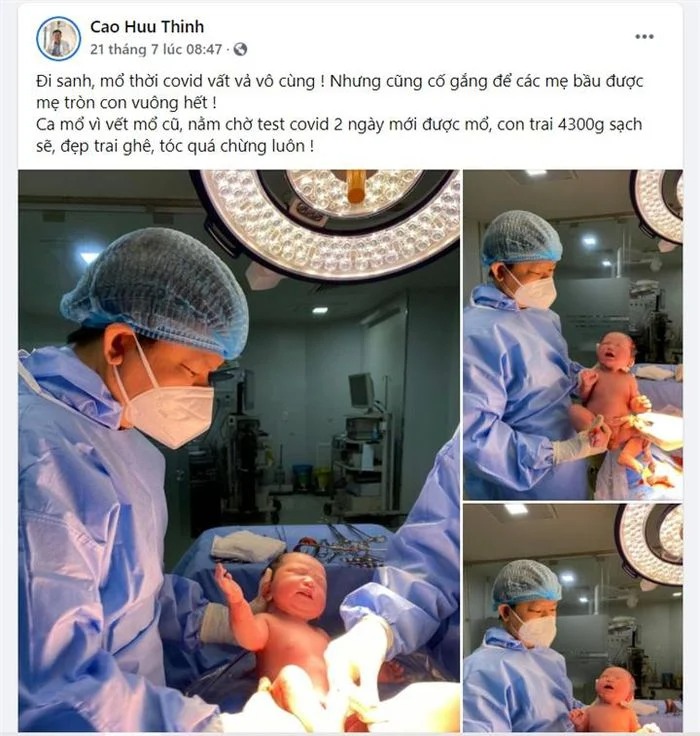 Một tài khoản Facebook khác là Cao Huu Thinh (Cao Hữu Thịnh) chia sẻ hình ảnh khi ông mổ cho một sản phụ hôm 21/7 và một tấm hình mổ cho sản phụ hôm 1/4.