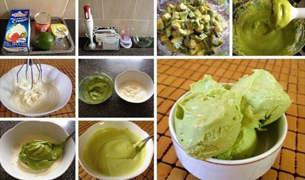 Làm kem: Cho hỗn hợp sốt kem trên vào máy xay sinh tố, xay 1-2 phút. Rồi từ từ vừa cho bơ vào vừa xay để được hỗn hợp mịn sánh dẻo. Đổ hỗn hợp kem bơ vào khuôn làm kem hoặc vào túi tùy chọn. Đặt vào ngăn đá tủ lạnh từ 8 tiếng hoặc qua đêm là được.