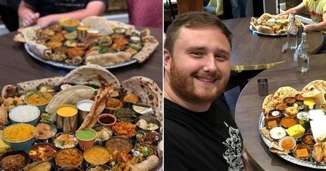 Một nhà hàng nổi tiếng ở Manchester, Anh quốc đã thách thức những thực khách dũng cảm có thể một mình ăn một mâm lớn các món ngon của Ấn Độ chỉ trong một giờ.