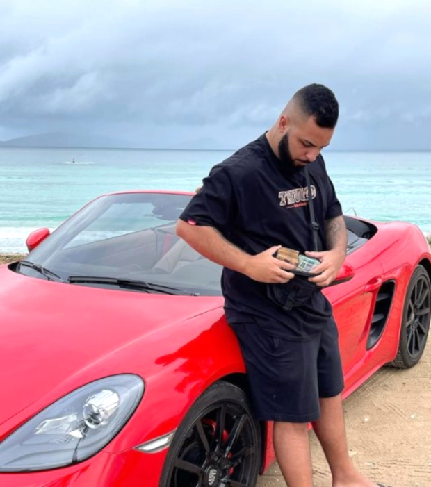 Bức ảnh cuối cùng của thanh niên xấu số là hình ảnh ngồi trên xe sang Porsche màu đỏ, cầm trên tay cọc tiền dày cộp.