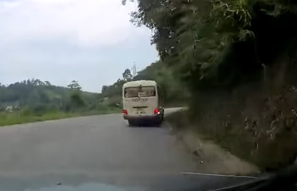 Old  Default Tài xế xe khách' trổ tài' đi lùi tại đoạn cua, suýt gây tai nạn
