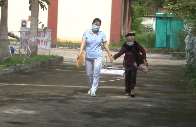 Previously, Mrs. H.T.M (96 years old, living in Tan Hung commune, Hon Quan) was found to be positive for Covid-19 on July 25. After 19 days of treatment at the medical isolation ward and treatment of Covid -19 patients at the district health center, Mr. M. had 2 times tested negative for Covid-19, eligible for discharge as prescribed. .
