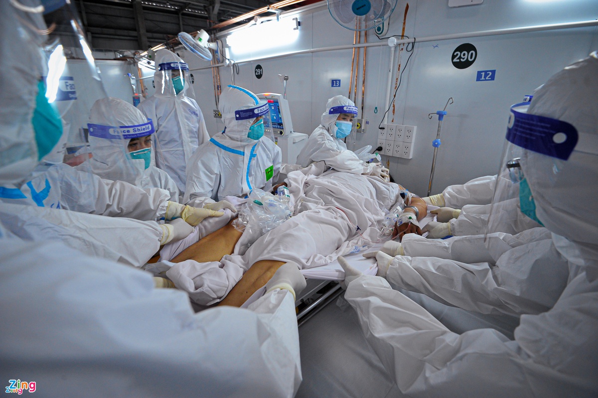 Các bác sĩ đang điều trị chuyên sâu cho bệnh nhân Covid-19 nặng ở TP.HCM. Ảnh: Chí Hùng.