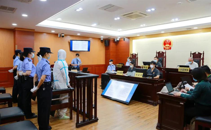Guo Meimei đứng trước vành móng ngựa khi công tố viên đọc cáo trạng hôm 13/8 tại tòa án Giao thông Đường sắt Thượng Hải. Ảnh: Shine.