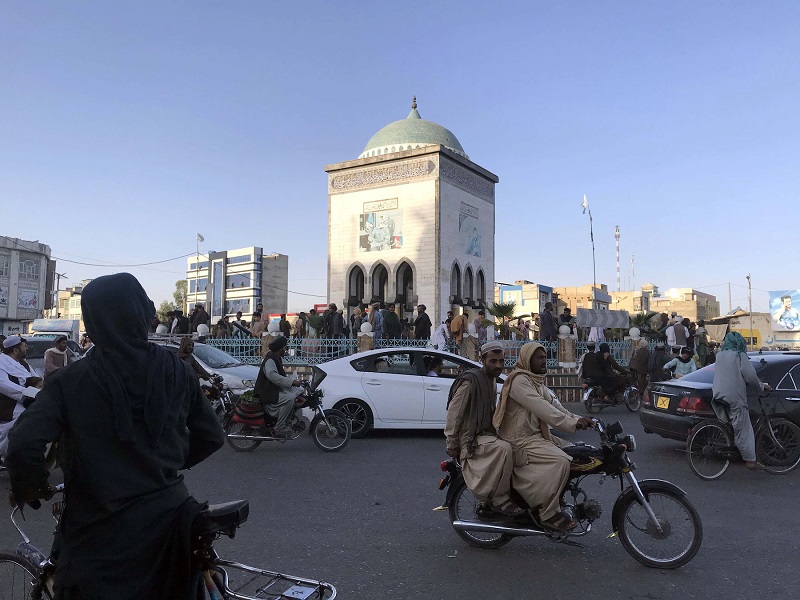 Các chiến binh Taliban tràn ra đường sau khi chiếm được Kandahar. Ảnh Washingtonpost