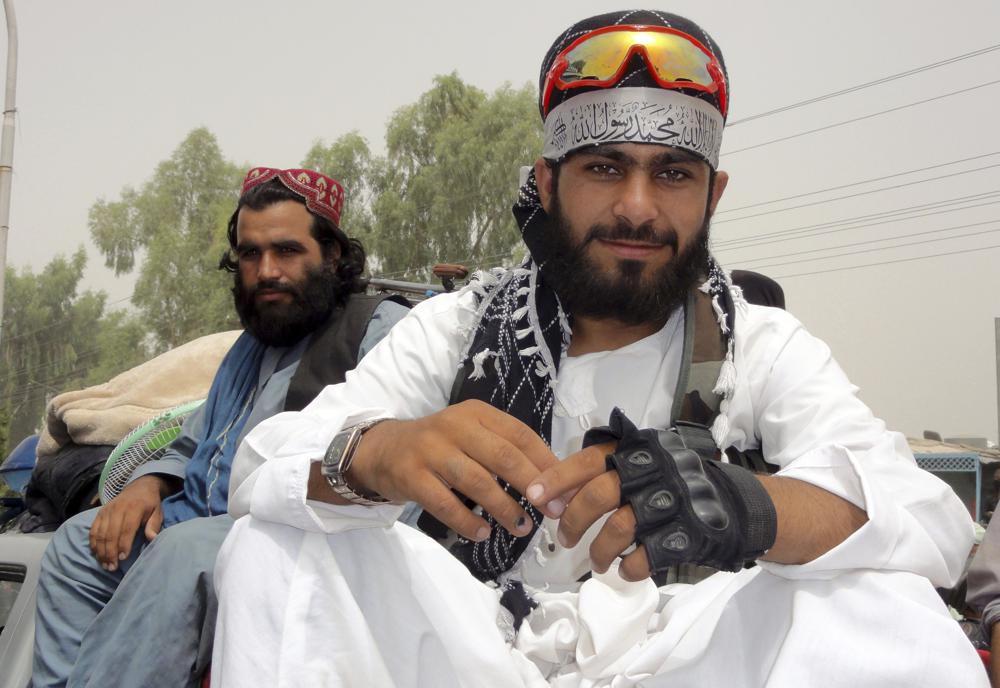 Chiến binh Taliban chụp hình ở thành phố Kandahar, tây nam Afghanistan, hôm 15/8. Ảnh: AP