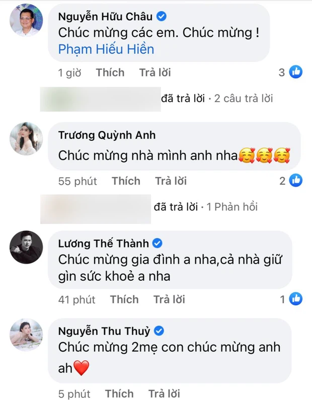 NS Hữu Châu, Lương Thế Thành, Trương Quỳnh Anh, Thu Thuỷ gửi lời chúc mừng gia đình nam diễn viên