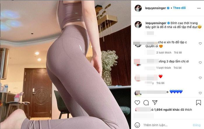 Trong mùa dịch này, có thể thấy nhiều nghệ sĩ "nghiện" diện đồ tập. Mới nhất, Tiên Nguyễn đã chia sẻ với người hâm mộ về quá trình luyện tập của cô ở nhà. Nhiều ngừoi lập tức nhìn ra cô và Lệ Quyên đã vô tình "đụng hàng" đồ tập.
