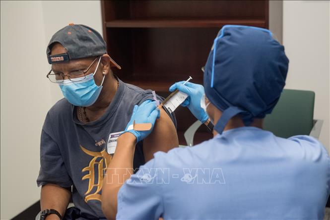 Tiêm vaccine ngừa COVID-19 cho người dân tại Detroit, bang Michigan, Mỹ ngày 5/8/2020. Ảnh: AFP/TTXVN
