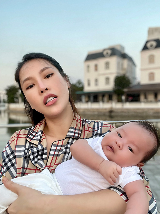 Quế Vân và con trai hơn một tháng tuổi ở Hải Phòng.