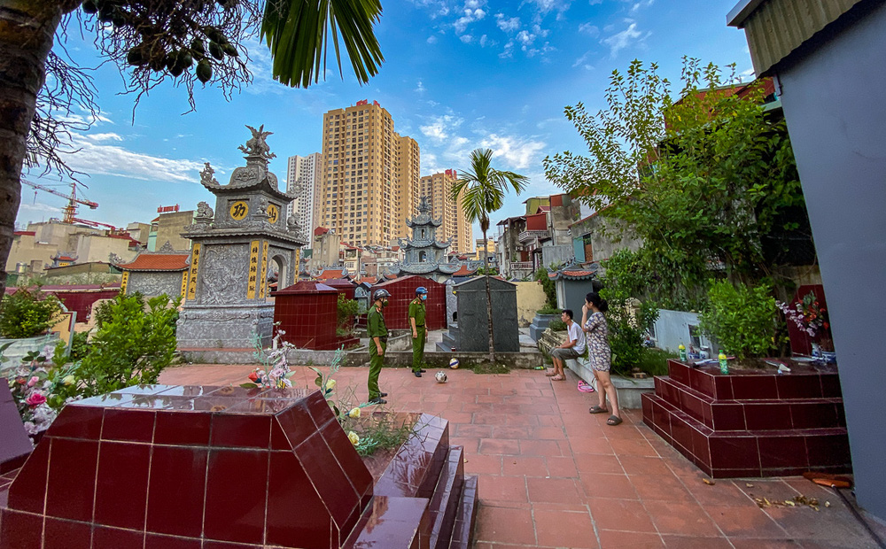 Sau khi nhận được phản ánh, lực lượng chức năng phường Định Công tới nghĩa trang nằm trên địa bàn kiểm tra thì phát hiện nhóm người đang tập thể dục tại đây.