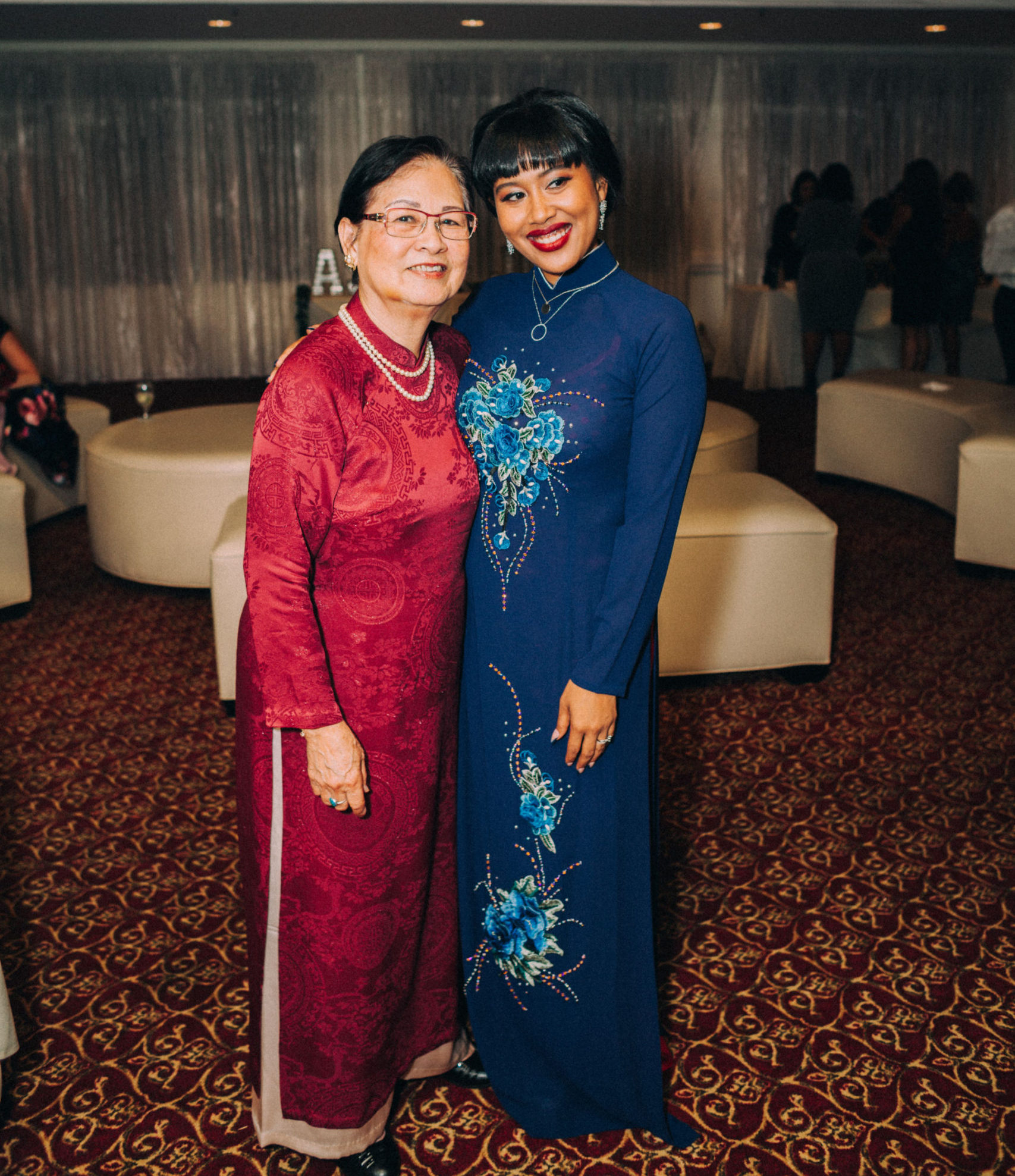 Ashley Nguyễn DeWitt và bà nội Dzung Metts cùng mặc áo dài trong ngày cưới của cô. (H́nh: Scott Simock)
