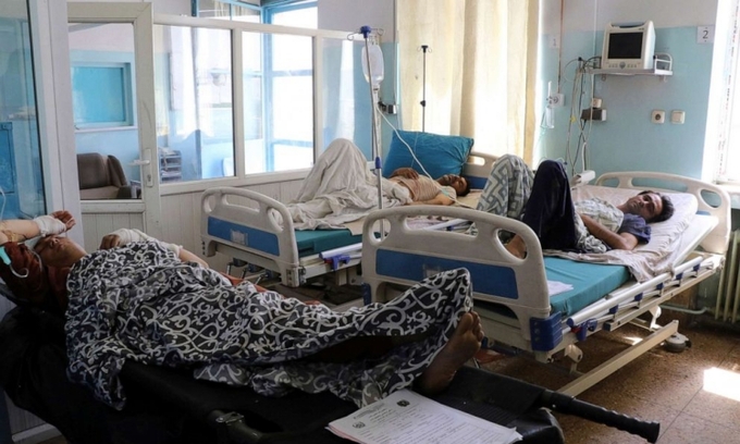 Nạn nhân vụ đánh bom ở sân bay Kabul trong một bệnh viện tại Afghanistan hôm 27/8. Ảnh: AP.