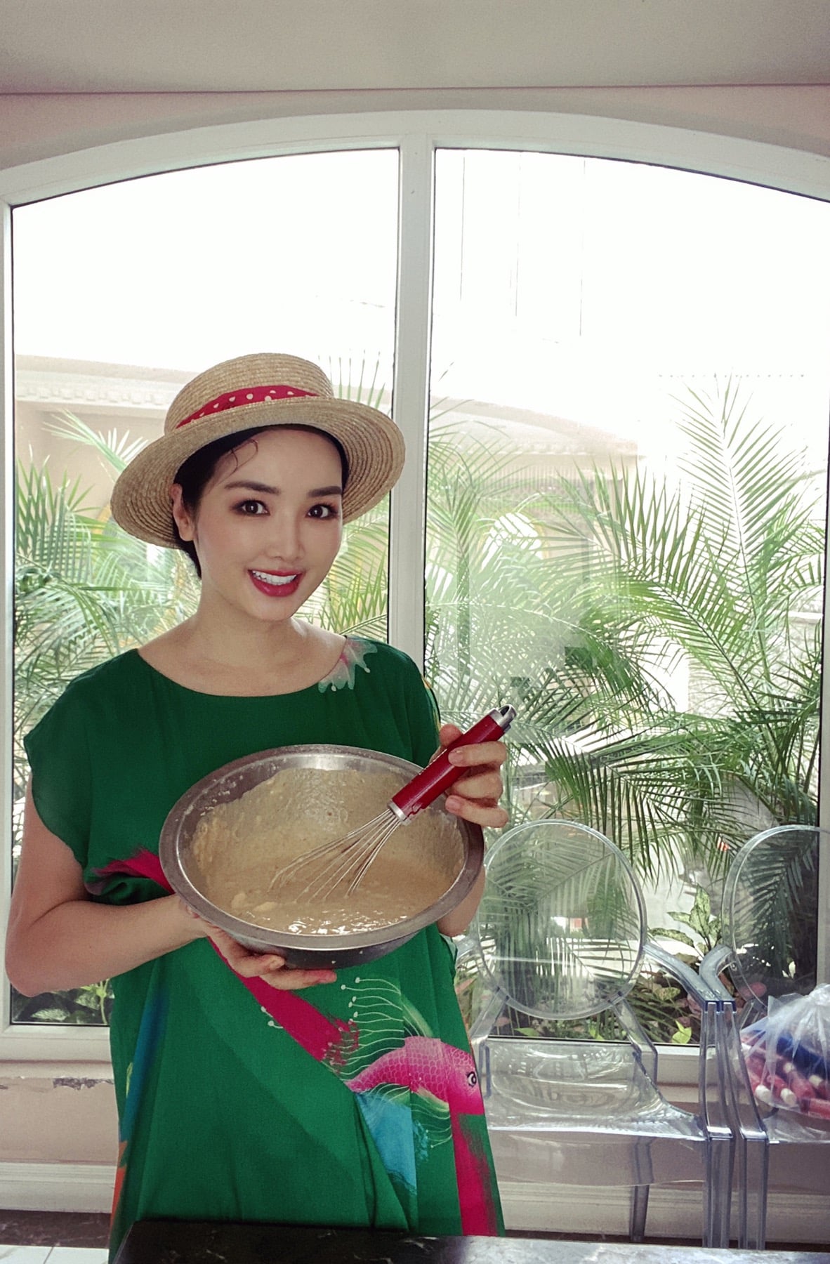 Cô có nhiều thời gian nấu ăn, chăm sóc mẹ và vườn cây trái. (Ảnh: FBNV)