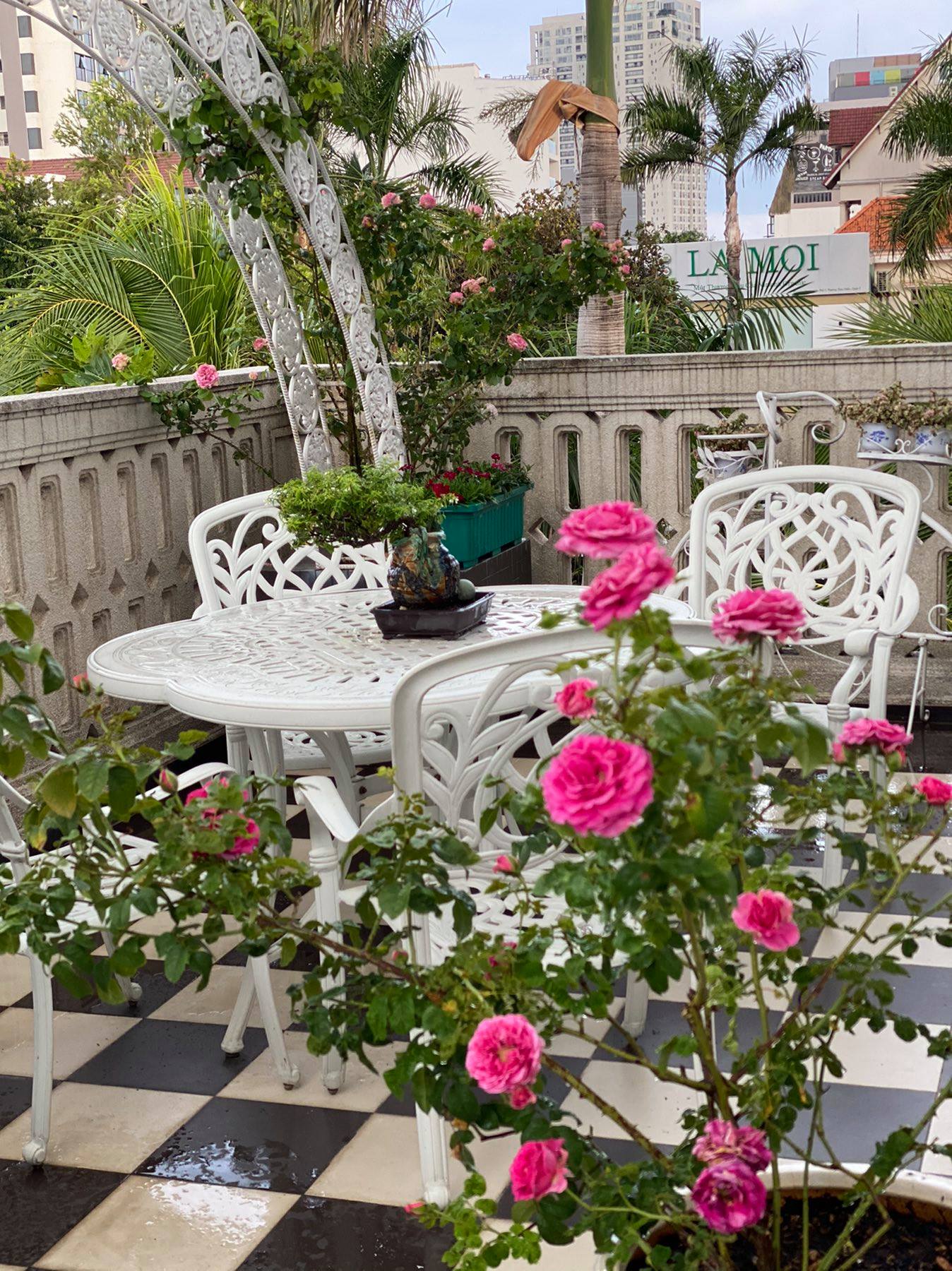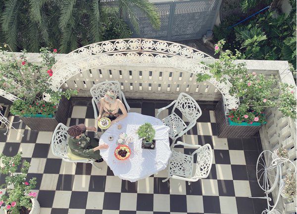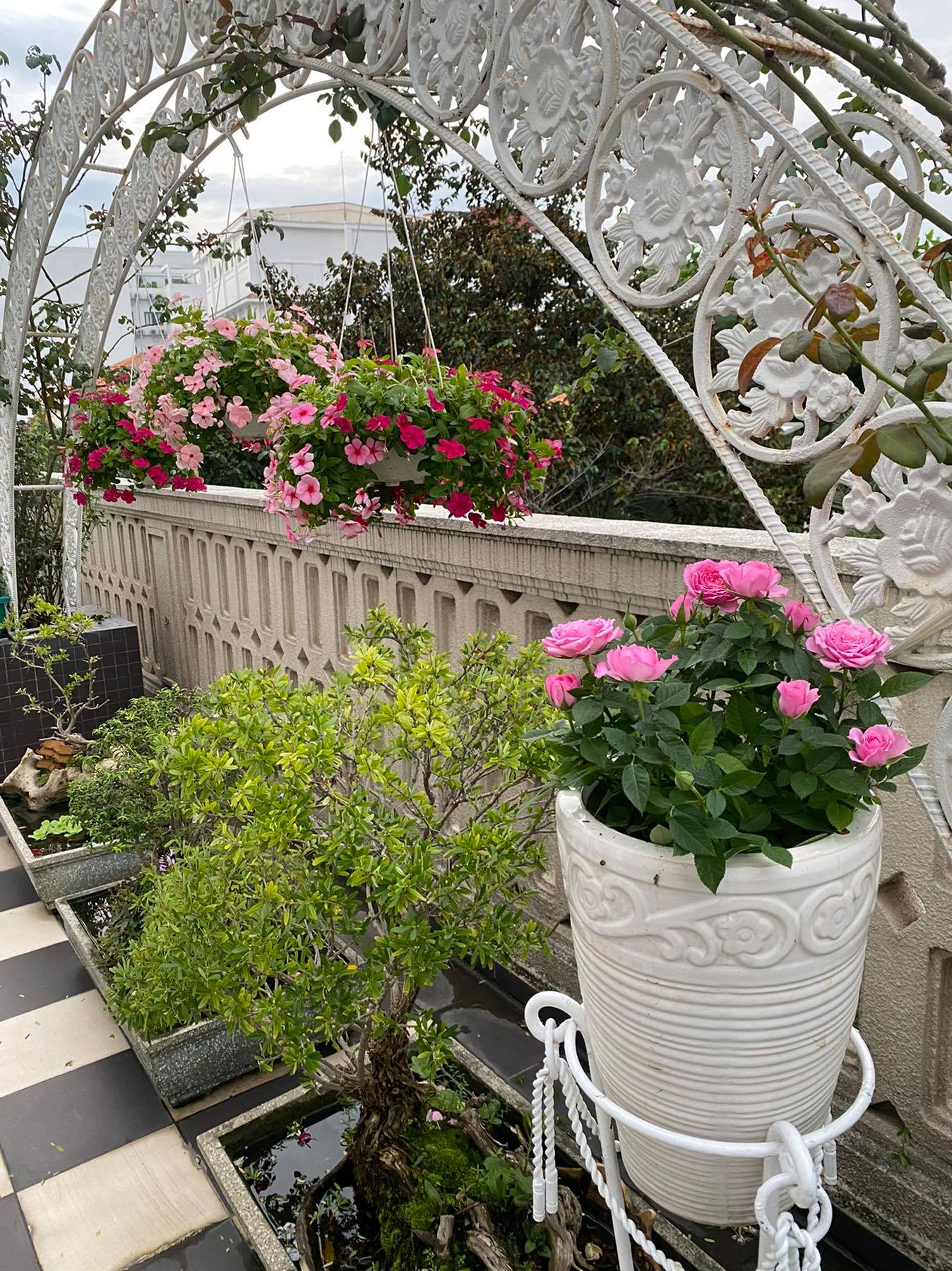 Những góc "sống ảo" trong khu vườn tràn ngập hoa hồng, cây xanh của hai mẹ con Hoa hậu Đền Hùng. (Ảnh: FBNV)