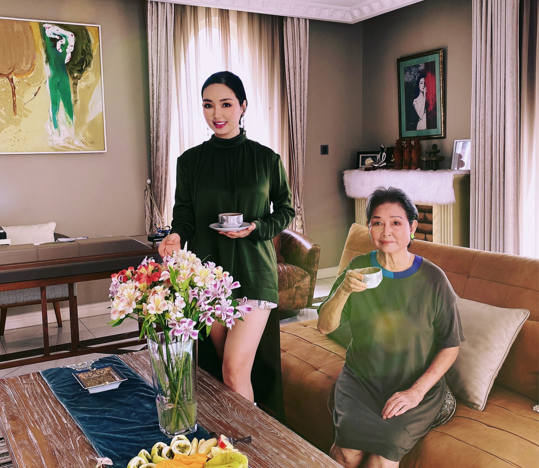 Nhà đẹp của sao: Hoa hậu Giáng My hạnh phúc bên mẹ trong những ngày ở nhà tránh dịch. (Ảnh: FBNV)