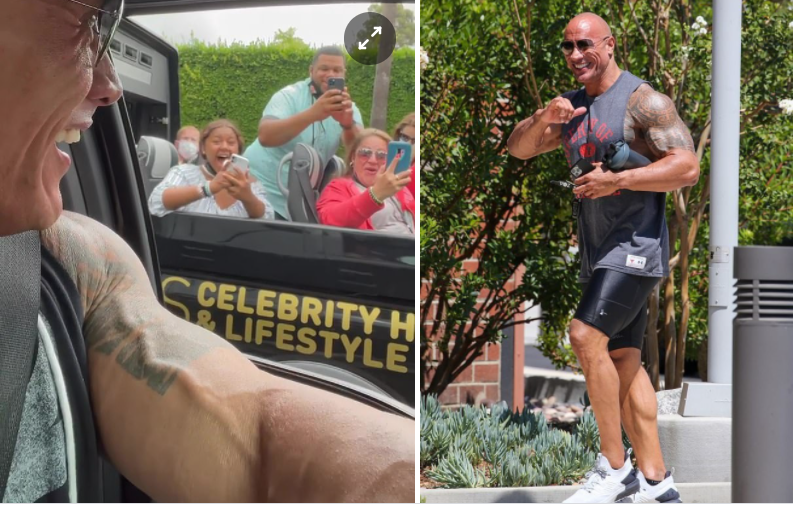 Trong buổi dạo phố bằng ôtô, khi bắt gặp nhóm du khách, The Rock dừng lại tương tác và khiến người dân phấn khích. Họ hò hét, dùng điện thoại chụp ảnh sau khi phát hiện ngôi sao 49 tuổi đang cầm lái.