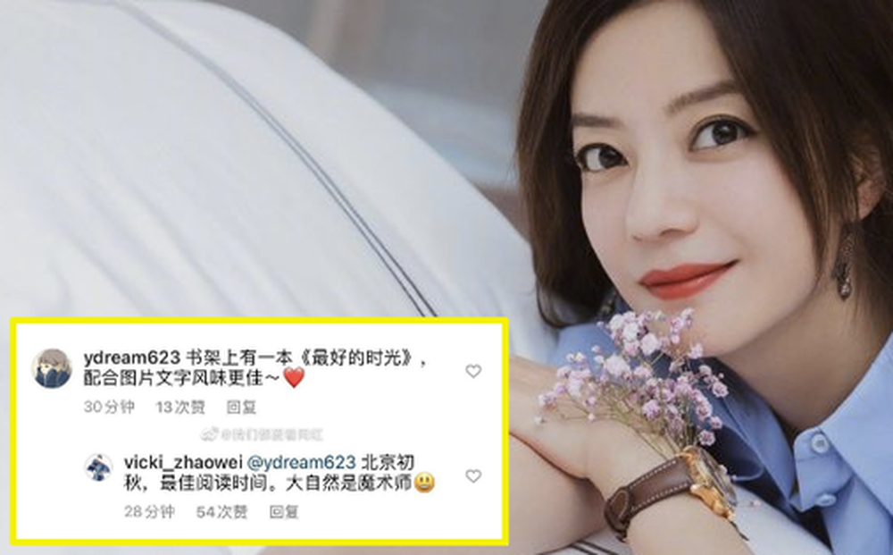 Đáng chú ư, khi 1 fan b́nh luận về cuốn sách có trên giá mà Triệu Vy đăng ảnh, "Én Nhỏ" đă vô t́nh tiết lộ về địa điểm ḿnh đang ở: "Bắc Kinh đă vào thu, là thời gian đẹp nhất để đọc sách. Thiên nhiên chính là nhà ảo thuật".