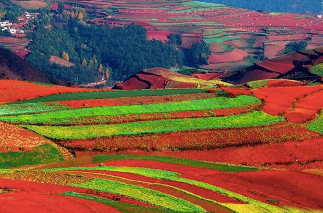 Lexiaguo nằm ở Côn Minh là thành phố thủ phủ của tỉnh Vân Nam và được đánh giá cao là một trong những địa điểm "đầy màu sắc" tự nhiên tuyệt đẹp nhất trên hành tinh. Vào tháng 11, các màu sắc phong phú của những cánh đồng sẽ mang lại cho du khách cảm giác như đang nhìn một bức tranh tuyệt vời.