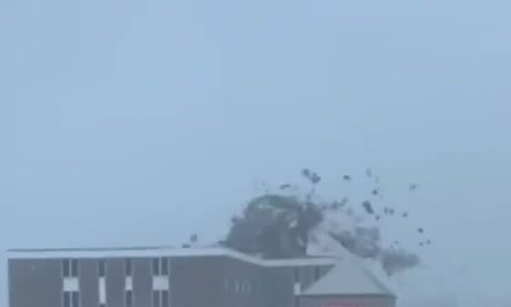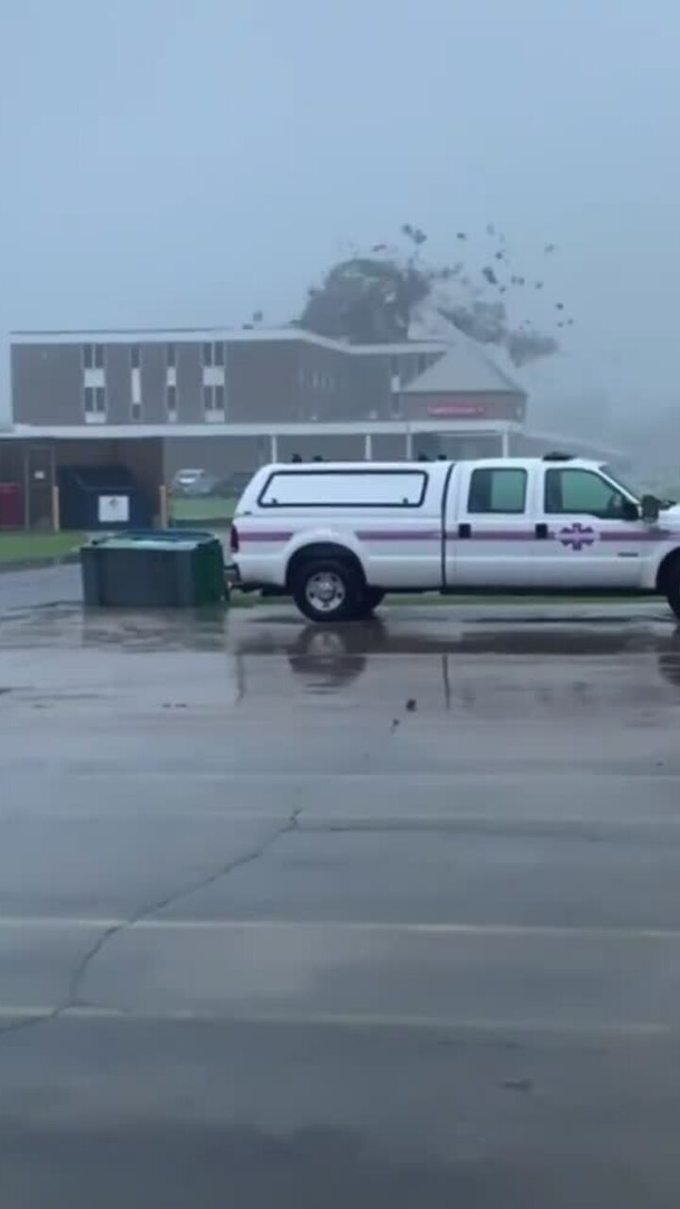 Phóng viên Christina Watkins của NBC hôm 29/8 đăng lên Twitter video ghi lại khoảnh khắc phần mái của bệnh viện đa khoa Lady of the Sea ở Galliano , bang Louisiana, Mỹ, bị cuốn bay khi siêu bão cấp 4 Ida đổ bộ.