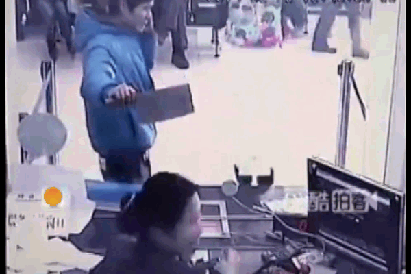 Vụ cướp hài hước trên xảy ra tại một ngân hàng ở Trung Quốc và đã được camera an ninh ghi lại.