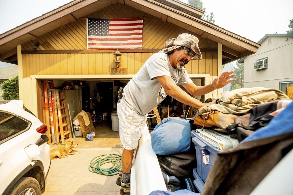 Michael Posadas, một người dân của thành phố South Lake Tahoe, California, đang chuẩn bị đồ đạc để sơ tán khi đám cháy Caldor đến gần vào ngày 30/8. Ảnh: AP.