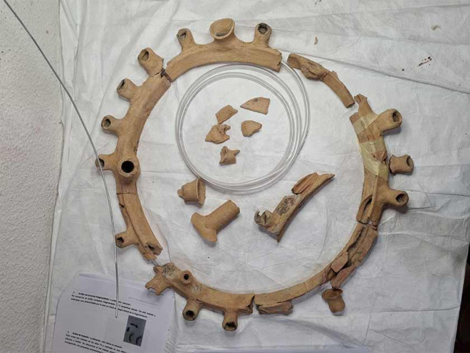 Báu vật hiếm thấy được làm bằng gốm, là một chiếc vòng rỗng ruột đường kính nửa mét với 32 họng đèn. Dầu được đổ vào bên trong đèn để thắp sáng.
