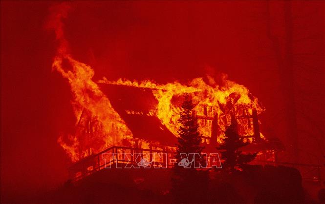 Nhà cửa bị thiêu rụi trong đám cháy rừng Caldor ở California, Mỹ, ngày 30/8/2021. Ảnh: AFP/TTXVN