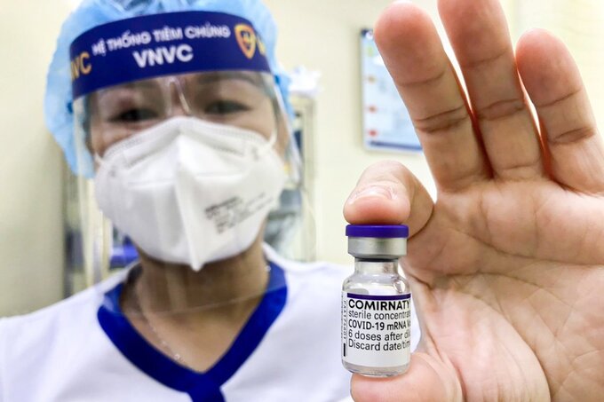 Nhiều thai phụ được tiêm vaccine Pfizer/BioNTech tại BVĐK Tâm Anh TP HCM thắc mắc về việc trên tem nhãn của lọ không có chữ Pfizer.