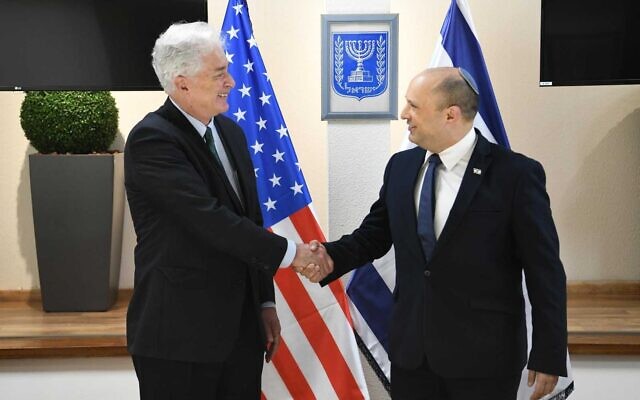 Giám đốc CIA William Burns (trái) gặp Thủ tướng Israel Naftali Bennett tại Jerusalem, ngày 11/8/2021. Ảnh: Times of Israel