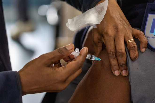 Nhân viên y tế tiêm vaccine Johnson & Johnson cho cư dân ở Cape Town. Ảnh: Bloomberg.