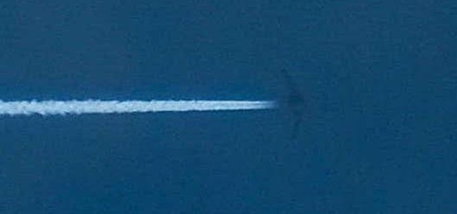 Bức ảnh cho thấy một chiếc máy bay đang di chuyển, để lại vệt ngưng tụ trên trời. Hình dạng và vệt ngưng tụ trong bức ảnh này giống với những gì mà người quan sát máy bay Rob Kolinsky đã chụp lại được gần Căn cứ Không quân Edwards ở California, Mỹ hồi tháng 10/2020.