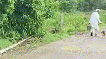 Ngay sau khi cụ già và con chó của ông bị tấn công, một người đi ngang qua đã dùng một cái gậy lớn hoặc một con dao để đuổi con linh cẩu đi. Vì khi tấn công cụ già này bất thành, con linh cẩu hung hăng còn đuổi theo một người đi xe máy khác, tất cả đã được một người qua đường quay phim lại.