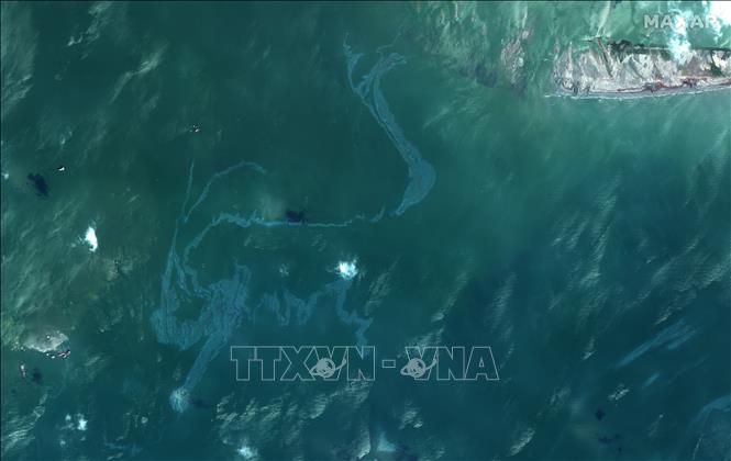 Hình ảnh vệ tinh cho thấy vệt dầu loang bị rò rỉ từ đường ống dẫn ở ngoài khơi bang Louisiana, miền Nam nước Mỹ ngày 5/9/2021. Ảnh: AFP/TTXVN