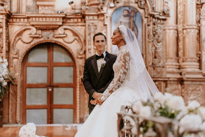 Siêu mẫu 30 tuổi người Mỹ Jasmine Tookes vừa kết hôn với doanh nhân Juan David Borrero hôm 4/9 sau 5 năm hẹn hò. Cặp đôi tổ chức đám cưới một nhà thờ Công giáo nổi tiếng ở Quito, Ecuador.