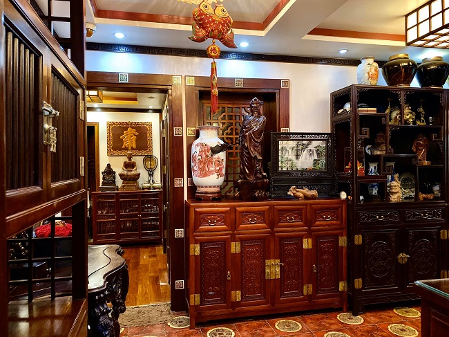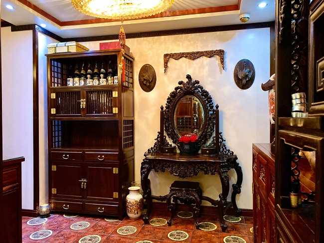 Giá trị món đồ hay cả căn nhà không chỉ nằm ở chất liệu gỗ mà còn ở độ quý hiếm, tuổi thọ của món đồ. Gia chủ đã mất nhiều năm và nhiều công sức để sưu tầm đồ gỗ quý từ khắp các quốc gia trên thế giới trong đó chủ yếu là Trung Quốc. (Ảnh: Sung Lee Nguyen)