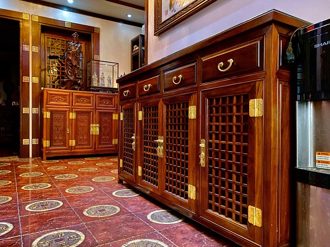 Đa phần các món đồ gỗ trong căn nhà đều được chế tác từ hai loại gỗ quý hiếm là: gỗ trắc và gỗ sưa. (Ảnh: Sung Lee Nguyen)