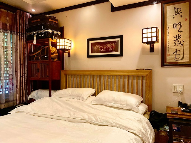 Căn nhà gồm hai phòng ngủ, một phòng bếp, một phòng thờ. Nội thất gỗ gần như phủ khắp không gian tuy nhiên nhờ sự sắp đặt tỉ mỉ nên không gây rối mắt. Trái lại, còn toát lên vẻ cổ điển, sang trọng. (Ảnh: Sung Lee Nguyen)