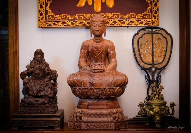 Bức tượng quan công mang ý nghĩa phong thủy được gia chủ đặt ở phía cửa ra vào. (Ảnh: Sung Lee Nguyen)